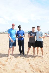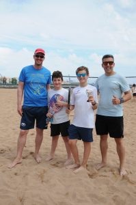Por la tarde, compitieron 10 parejas masculinas en un pozo que abarcó las 5 pistas montadas en la playa del Arbeyal. El sol decidió ausentarse, pero el buen juego estaba muy presente dando lugar a luchas épicas…